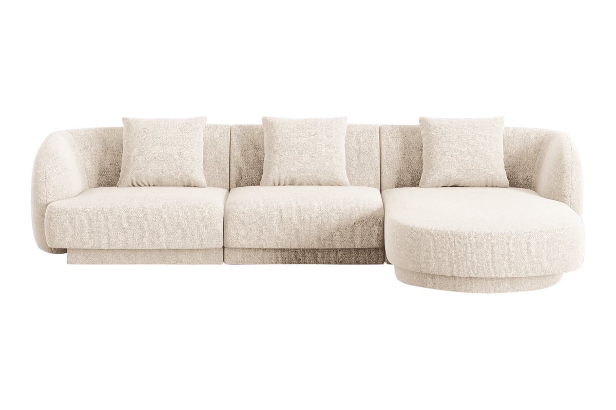 Canapé d'angle droit Tulum - Beige clair - 4 places - En polyester - Toucher soie