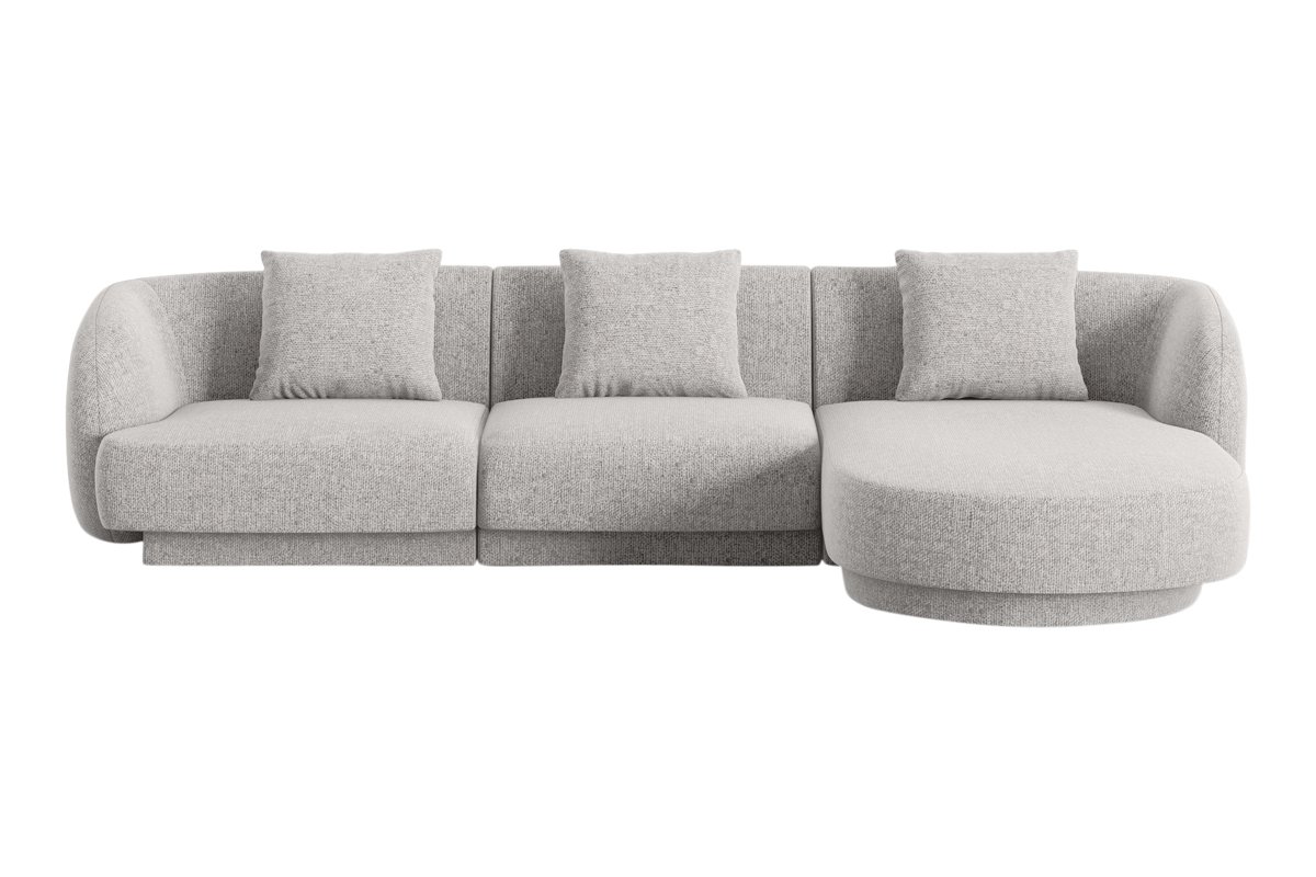 Canapé d'angle droit Tulum - Gris clair chiné - 4 places - En polyester - Toucher soie