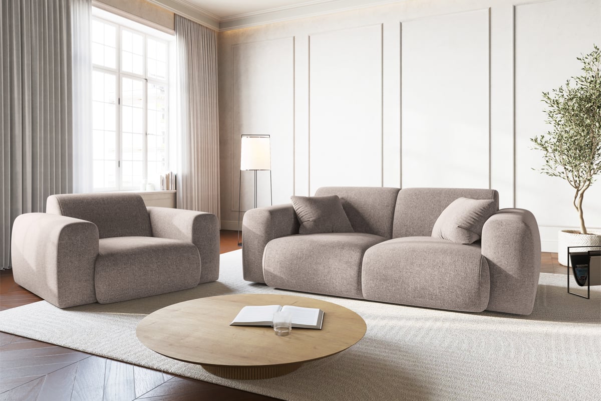 Canapé Nolio - Beige - 2 places - En tissu chenille - Toucher soie