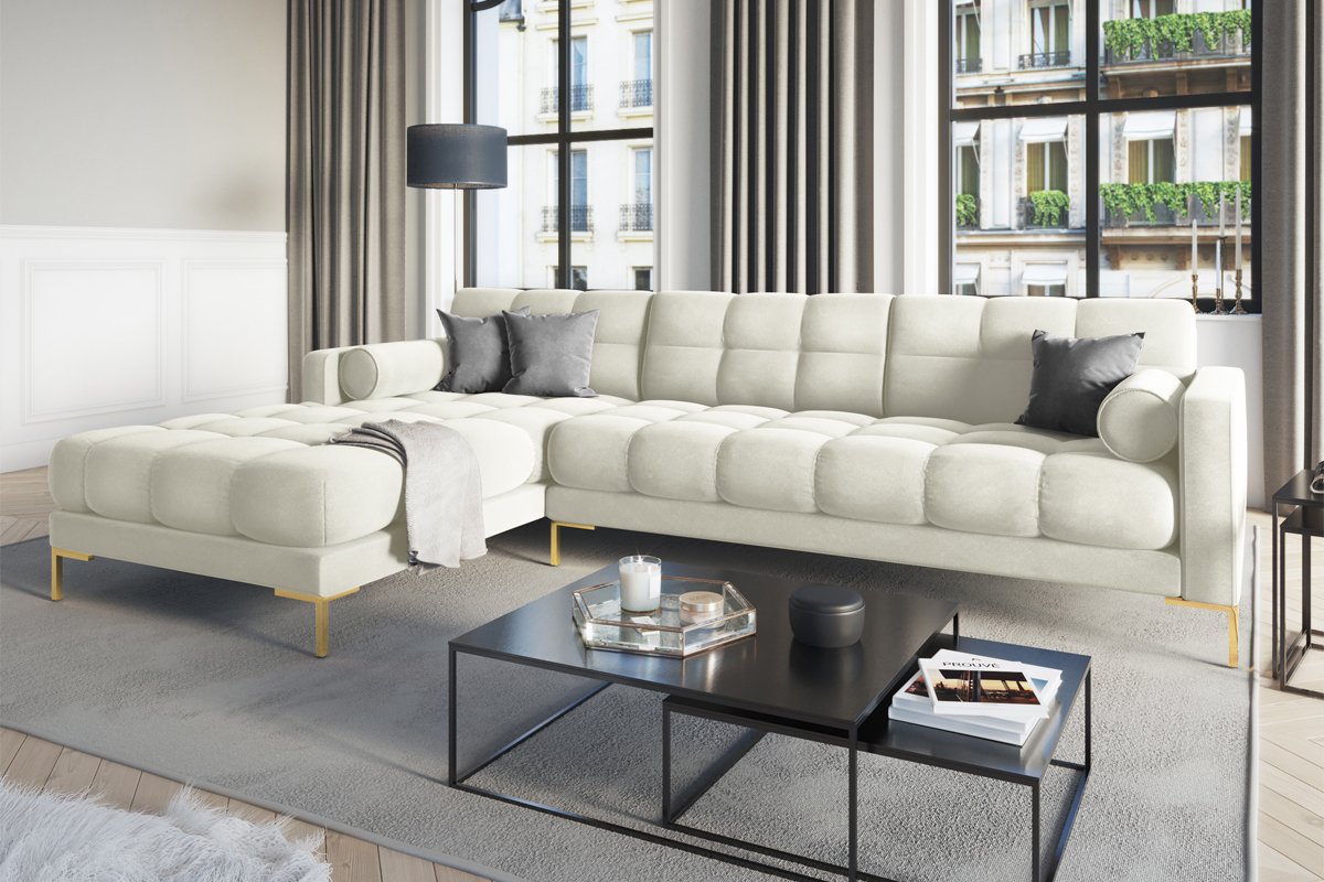 Canapé d'angle gauche Bali - Beige clair - 5 places - Toucher velours