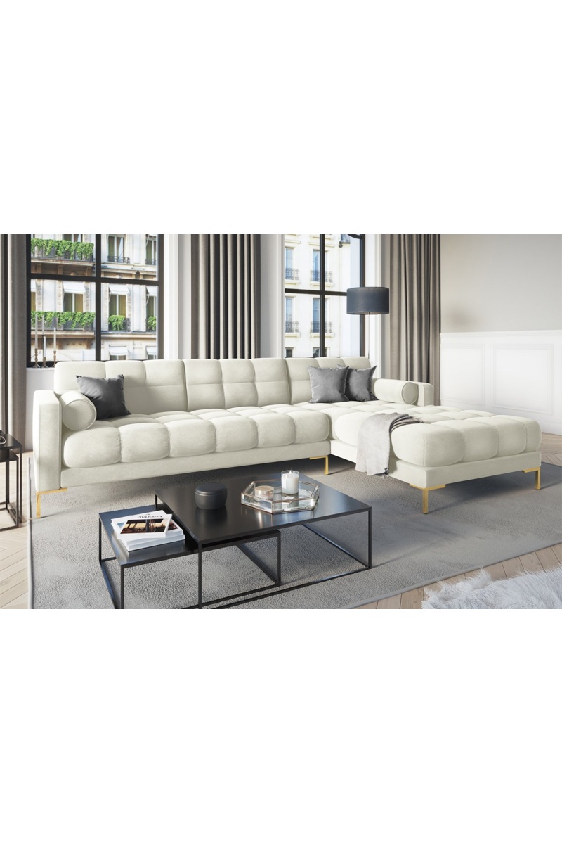 Canapé d'angle droit Bali - Beige clair - 5 places - Toucher velours