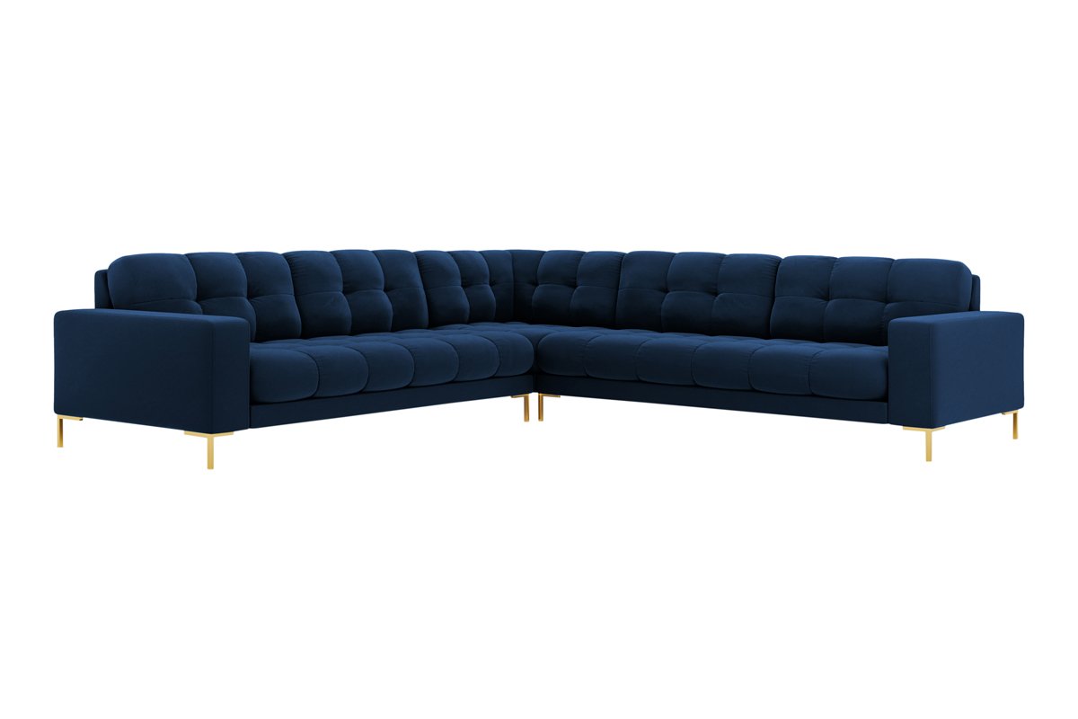 Canapé d'angle réversible Bali - Bleu roi et doré - 6 places - Tissu toucher velours