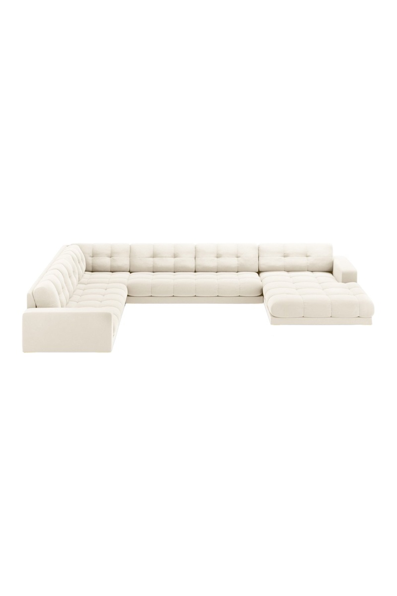 Canapé d'angle gauche panoramique Bali - Beige clair - 7 places - Toucher velours