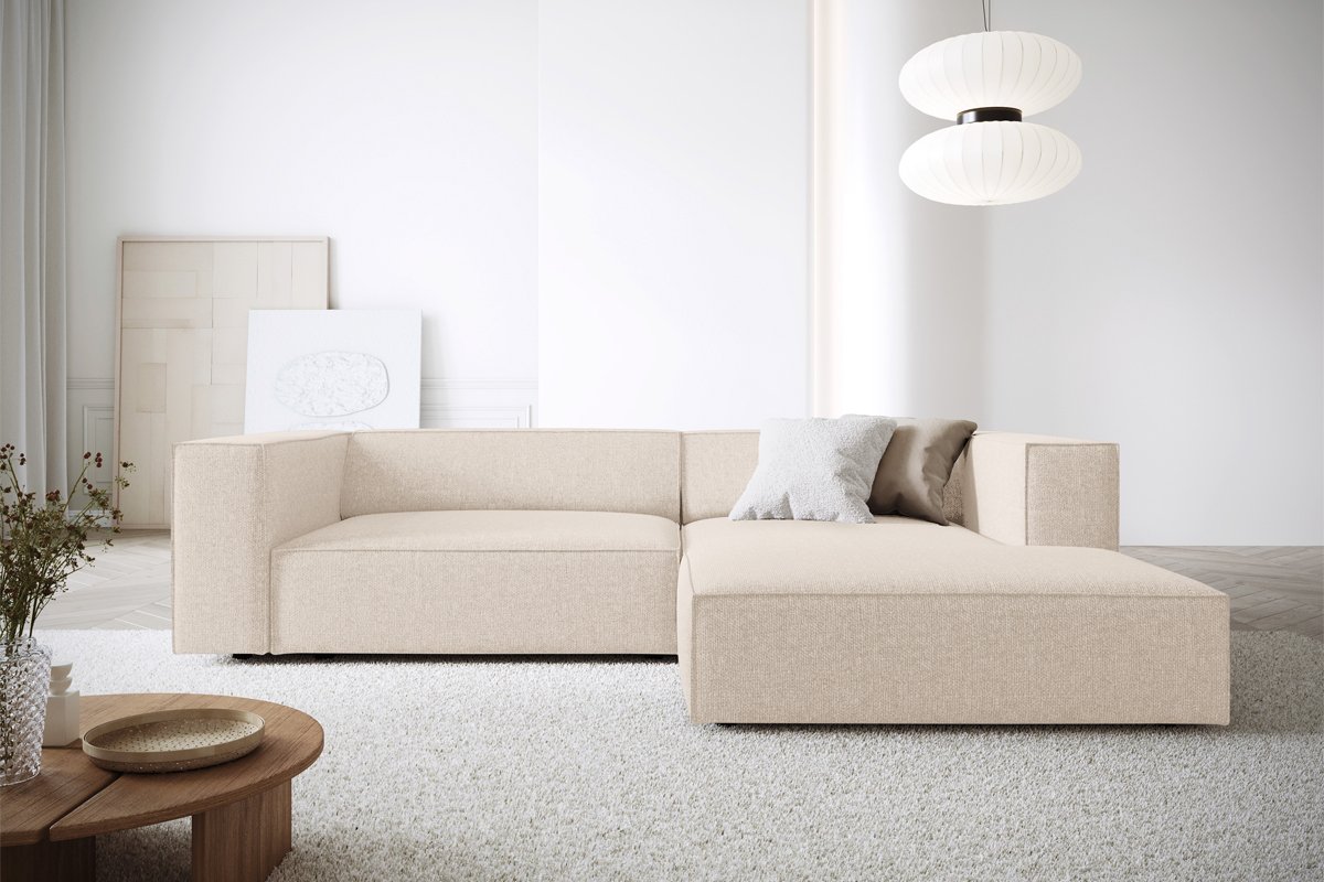 Canapé d'angle droit Arendal - Beige clair - 3 places - Tissu chenille
