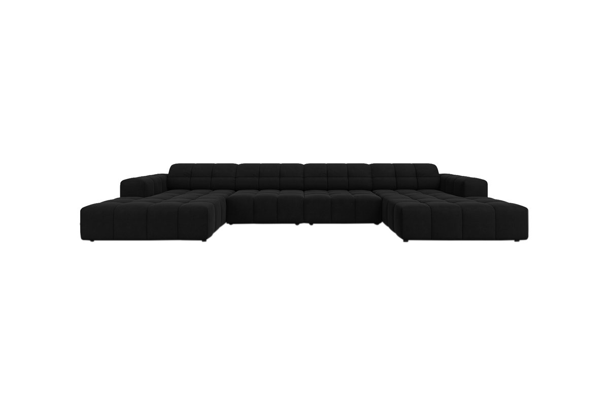 Canapé panoramique Chicago - Noir - 6 places - Tissus velours