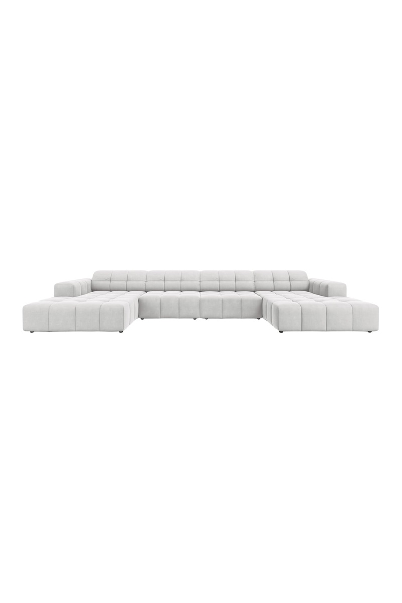 Canapé panoramique Chicago - Argenté - 6 places - Tissu velours
