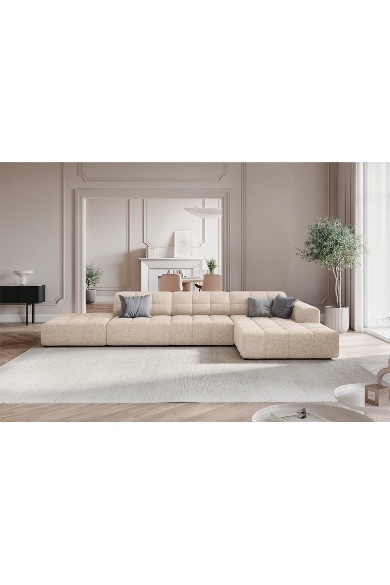 Canapé d'angle droit Chicago - Beige - 5 places - Tissu chenille