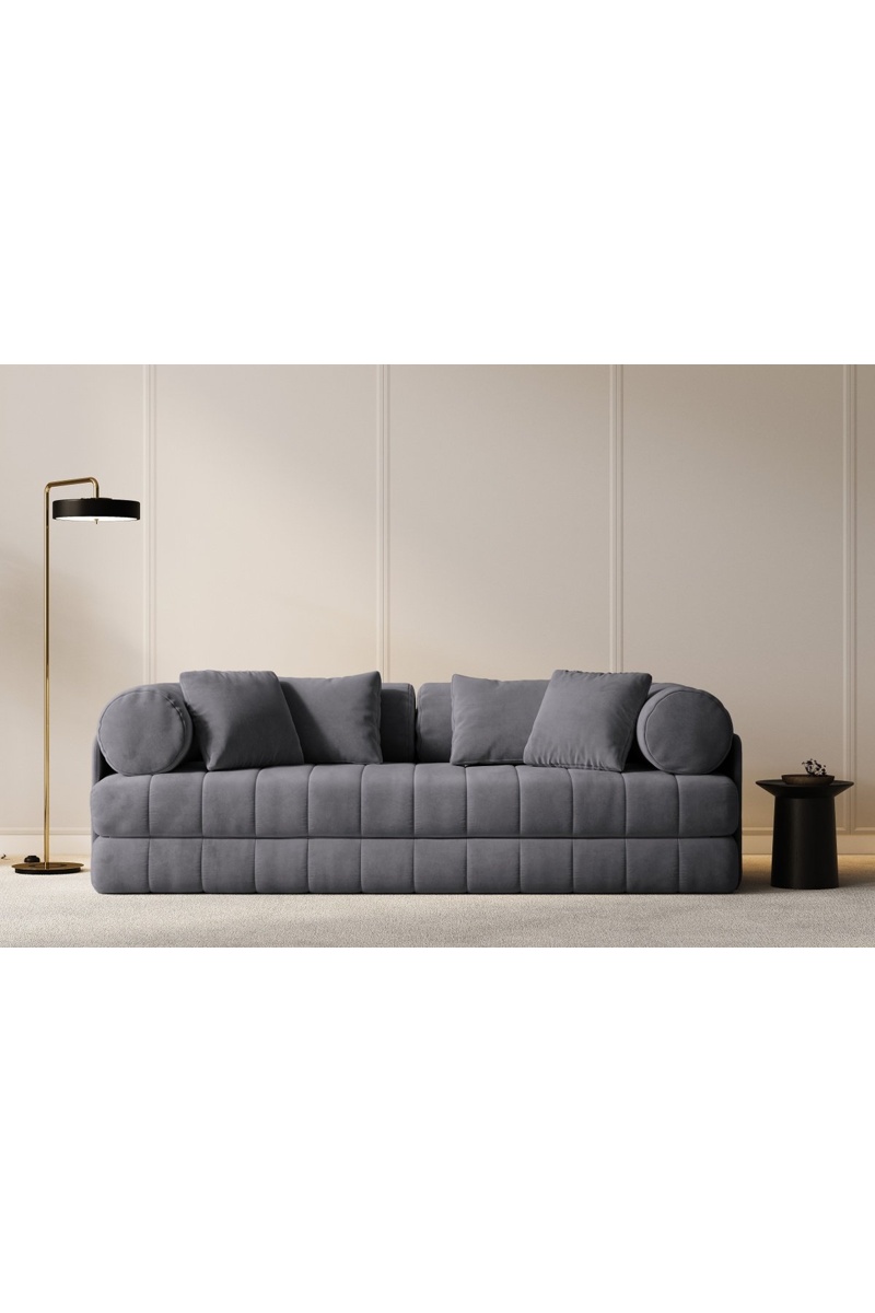 Canapé convertible Kemi - Gris foncé - 3 places - En tissu velours