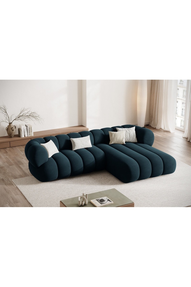 Canapé d’angle droit Koge - Bleu pétrole - 5 places - En tissu velours