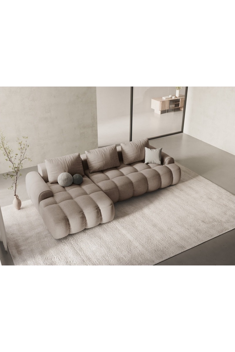 Canapé d’angle gauche convertible Linz - Sable - 3 places - En tissu structurel