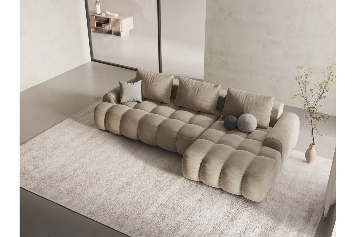 Canapé d’angle droit convertible Linz - Beige clair - 3 places - En tissu velours