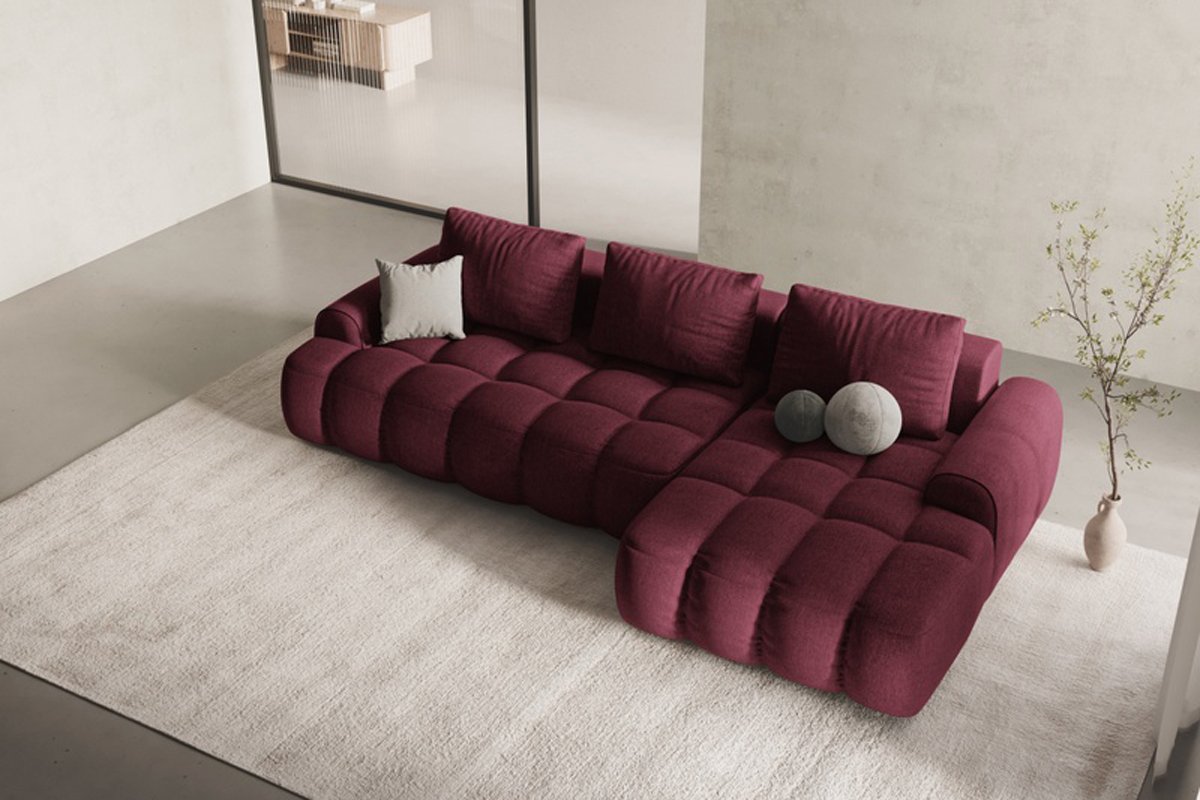 Canapé d’angle droit convertible Linz - Bordeaux - 3 places - En tissu structurel