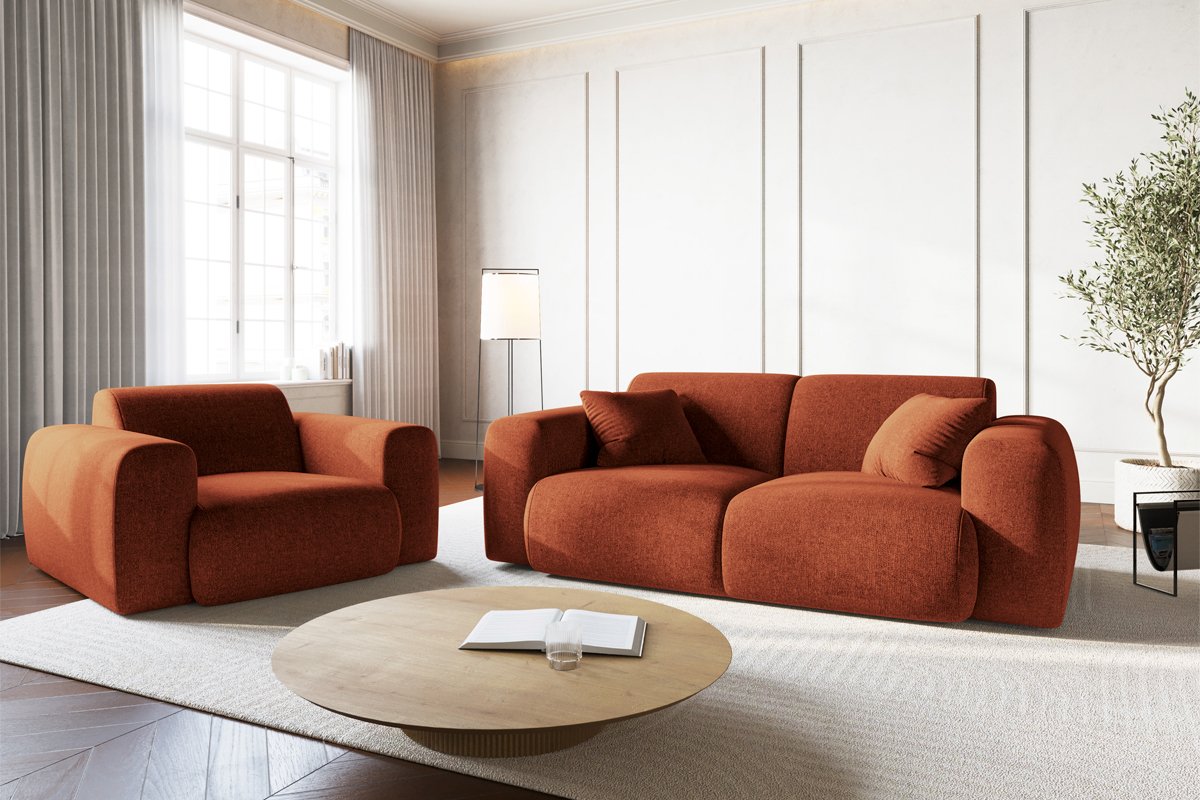 Fauteuil Nolio - Rouge brique chiné - En tissu chenille