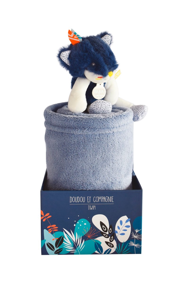 Plaid loup Tiwipi - Bleu-gris - Dès la naissance - 100 x 70 cm