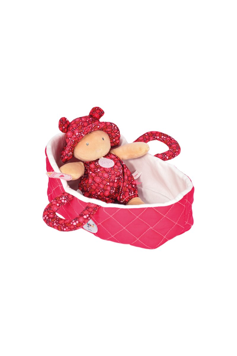 Peluche Maëlle et son couffin - Framboise et écru - Dès la naissance