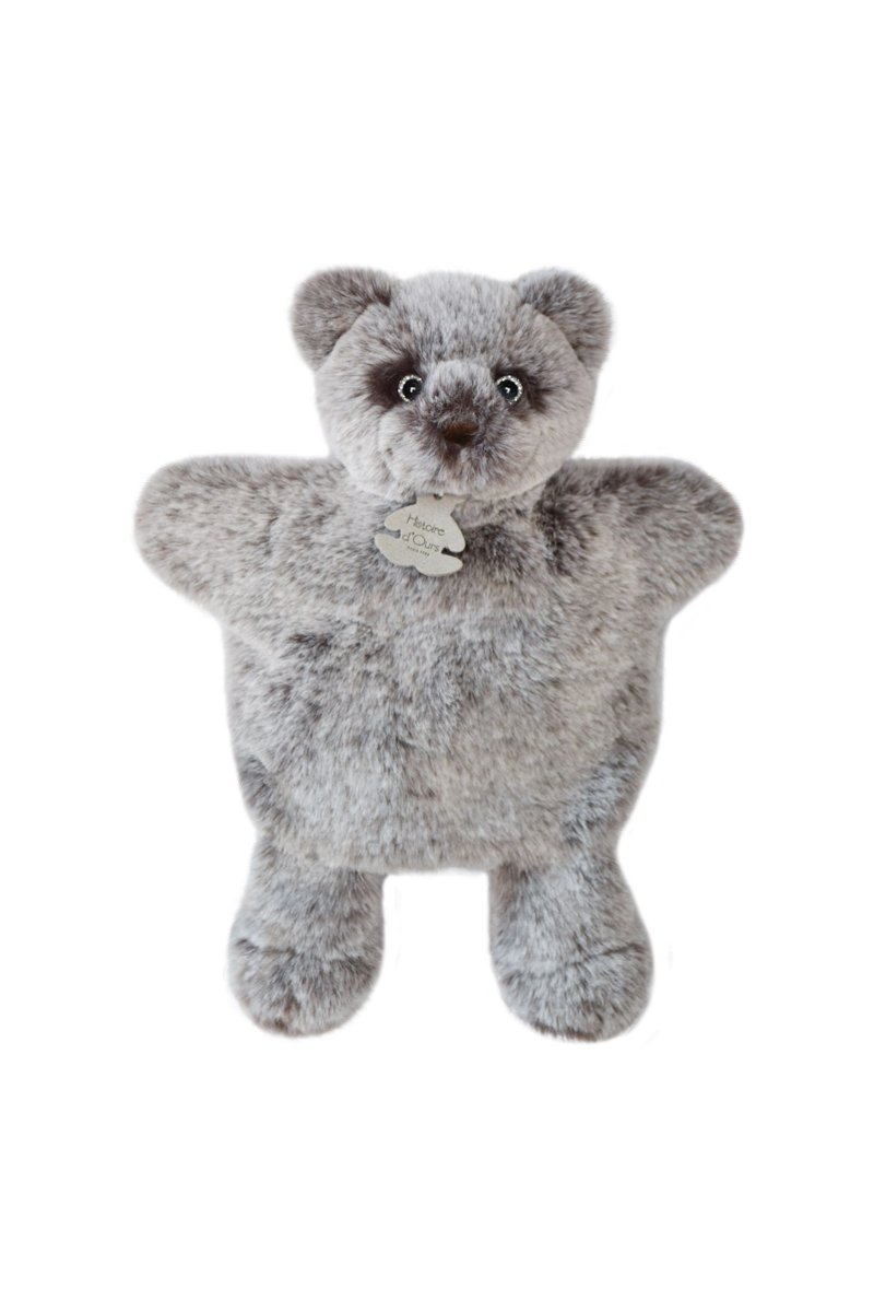 Cette jolie marionnette ours gris chiné, avec sa jolie matière dense et soyeuse, est aussi douce qu'un doudou.