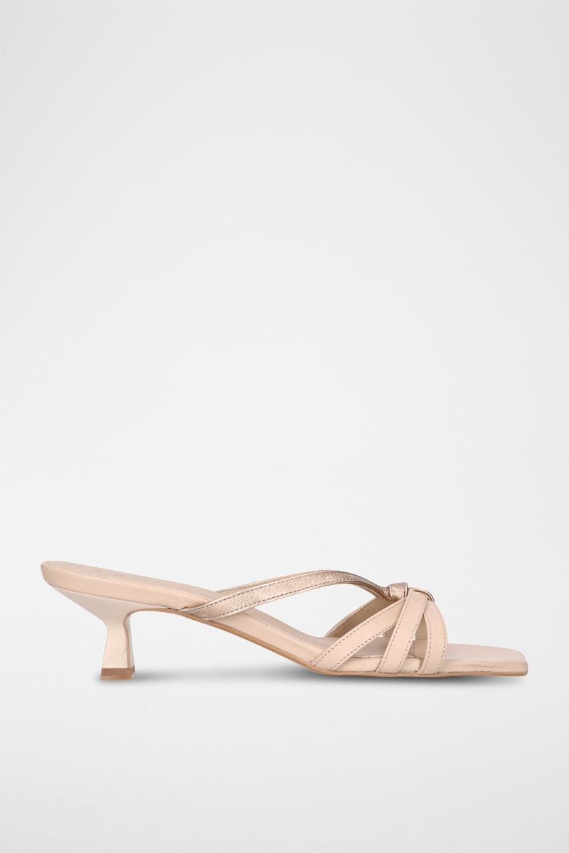 Mules à talons en cuir - Beige