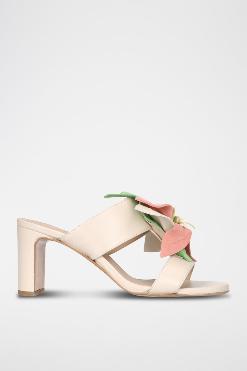 Mules à talons en cuir - Beige