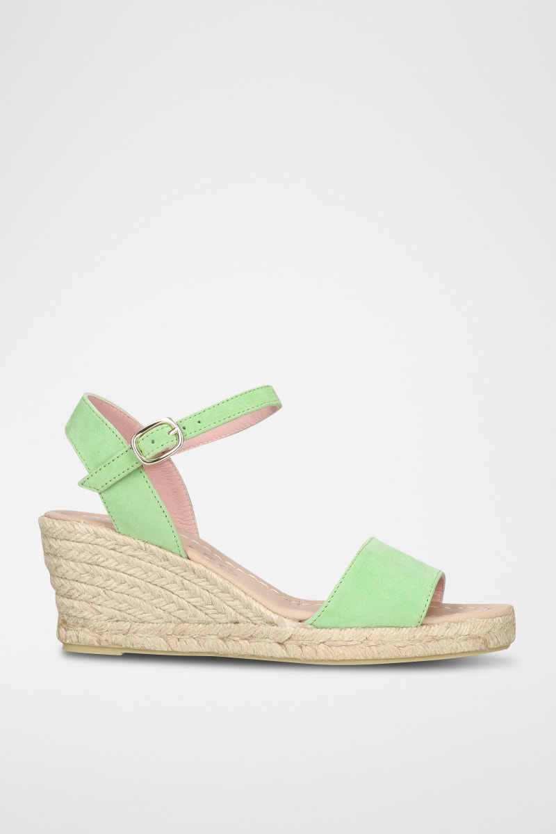 Sandales compensées en nubuck.