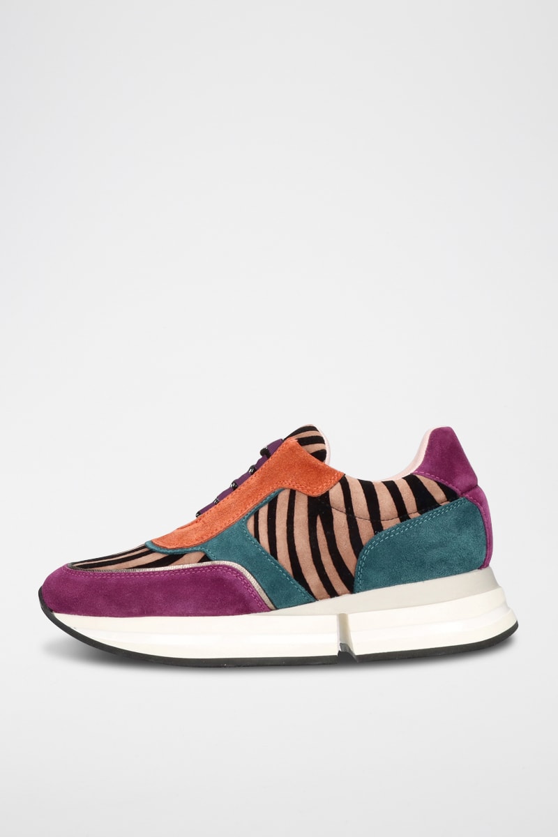 Baskets compensées en cuir - Fuchsia et beige