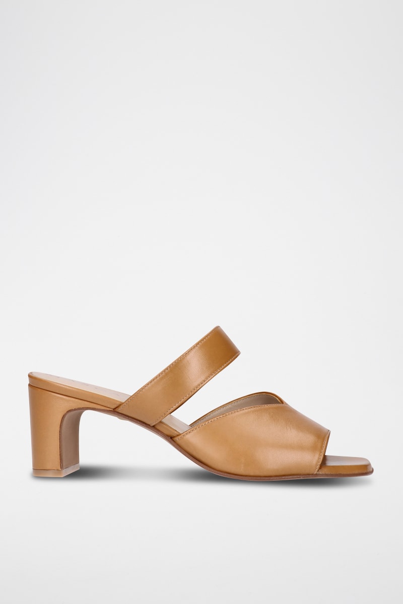 Mules à talons en cuir - Camel