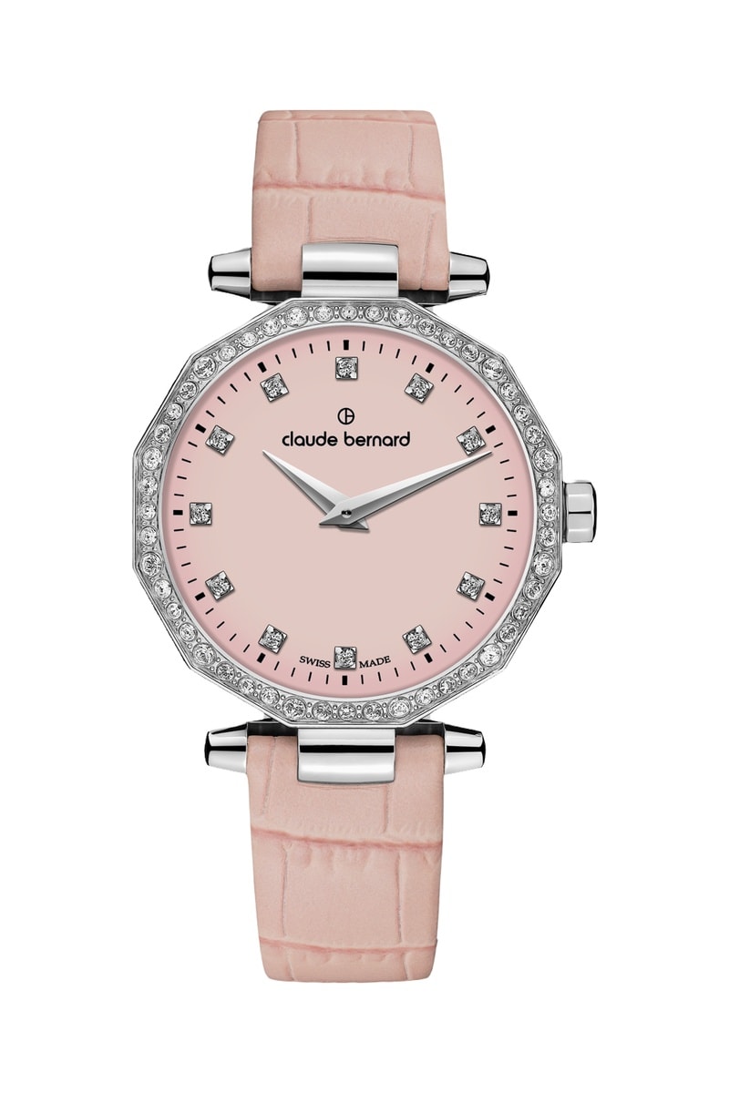 Cadran et lunette sertis de cristaux.