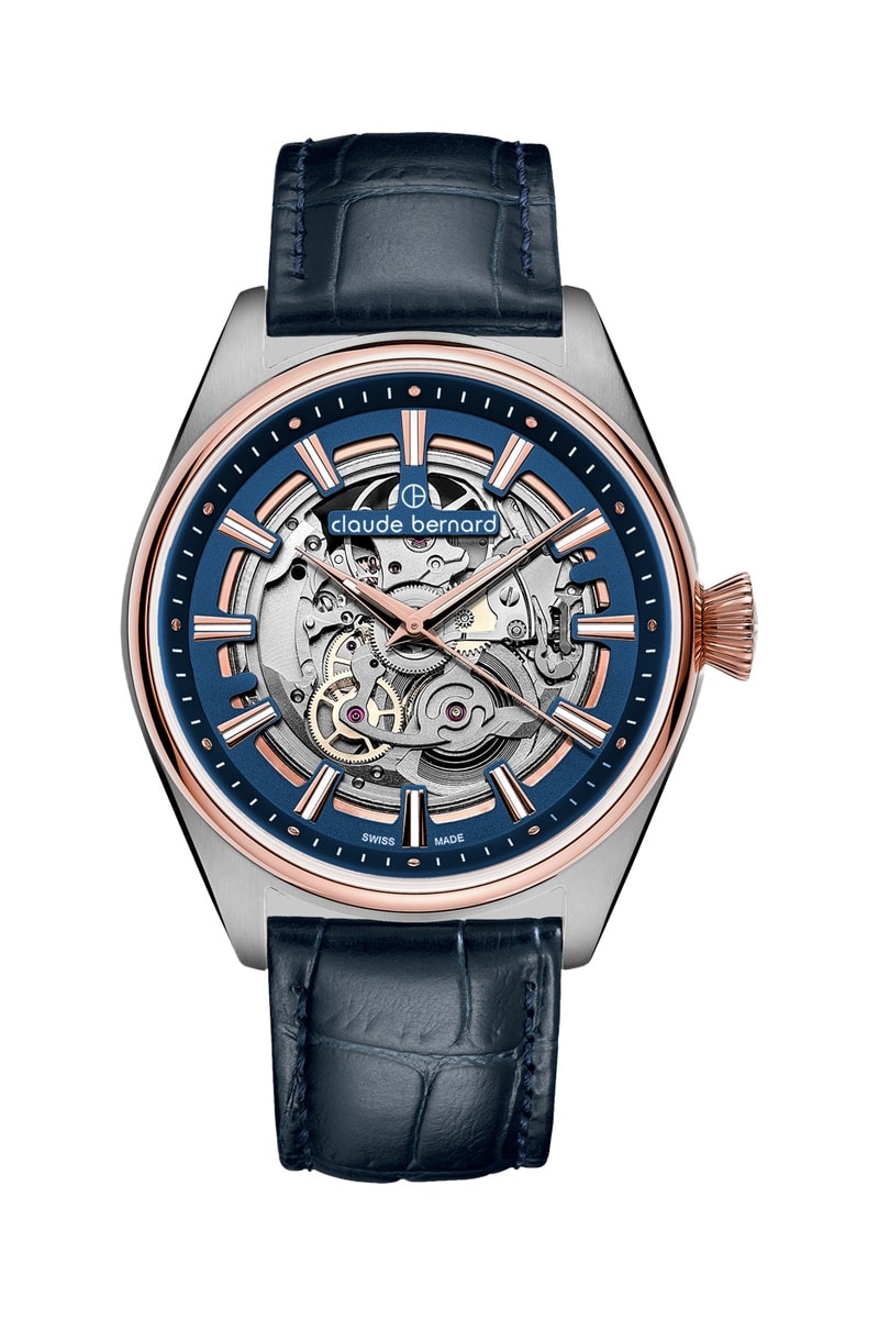 Montre automatique en cuir Proud Heritage - Bleu foncé et doré rose