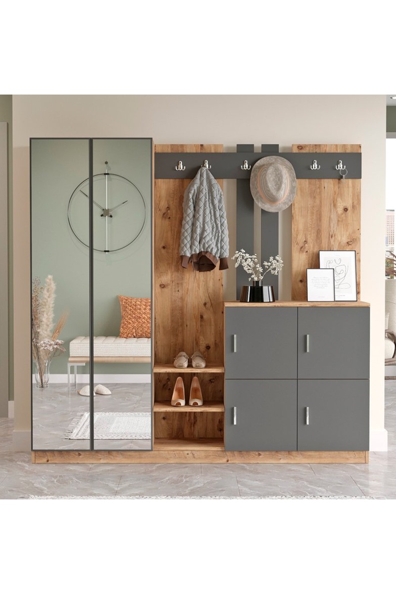 Meuble d'entrée 6 portes - Imitation bois et anthracite