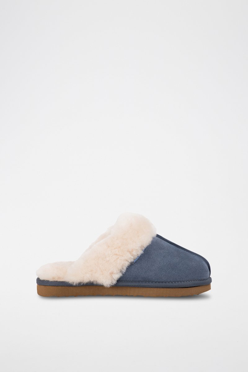 Chaussons fourrés en cuir de mouton nubuck - Bleu charrette