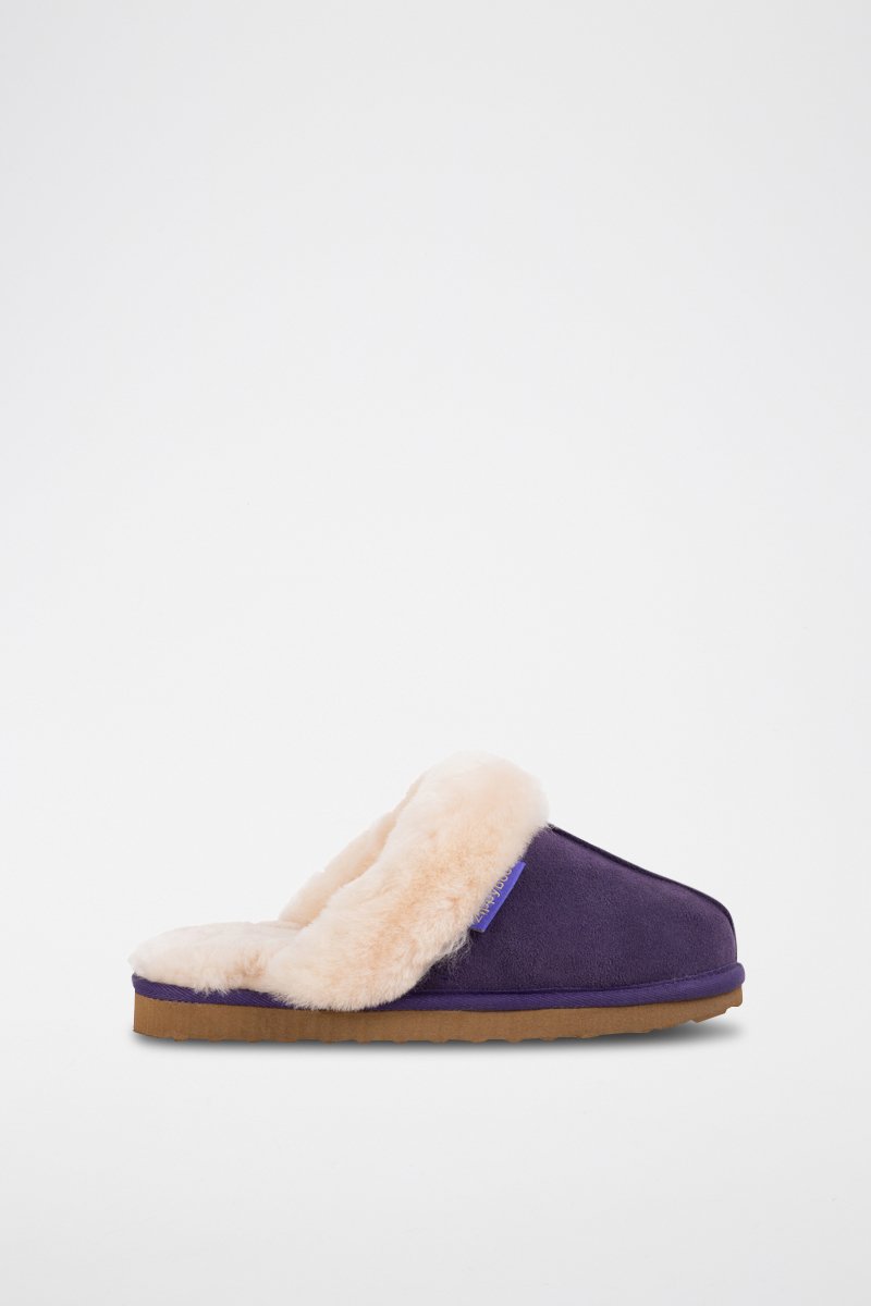 Chaussons fourrés en cuir de mouton nubuck - Violet