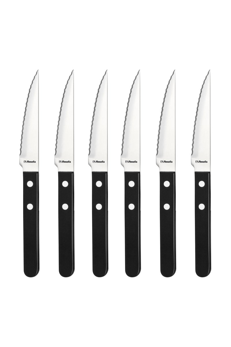 6 couteaux à Steak Pizza Noir en acier inoxydable et bois de pakka.