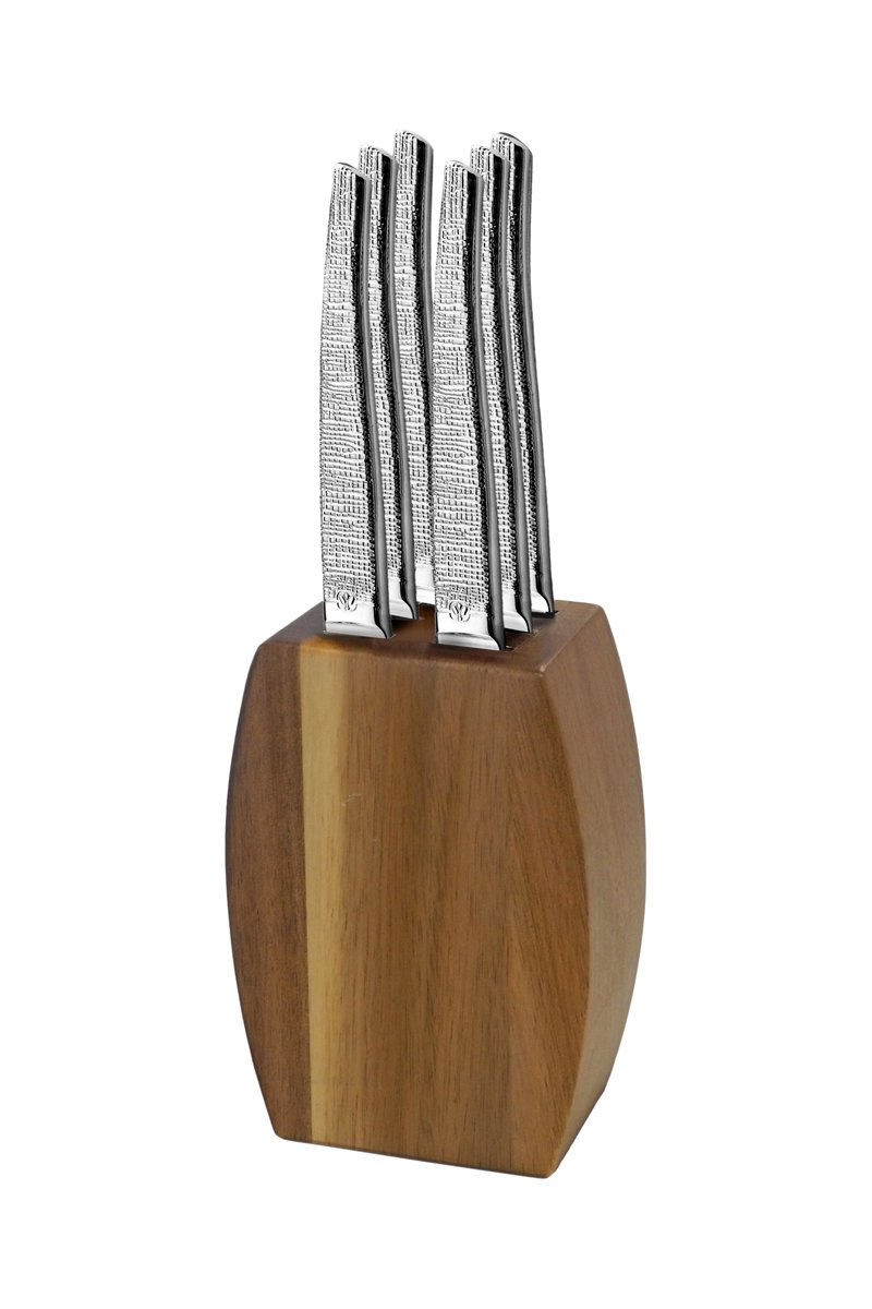 Bloc en bois avec 6 couteaux à steak en acier inoxydable