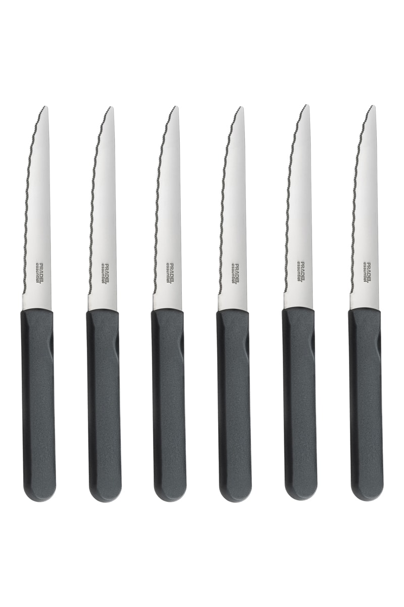 6 couteaux à steak en acier inoxydable.