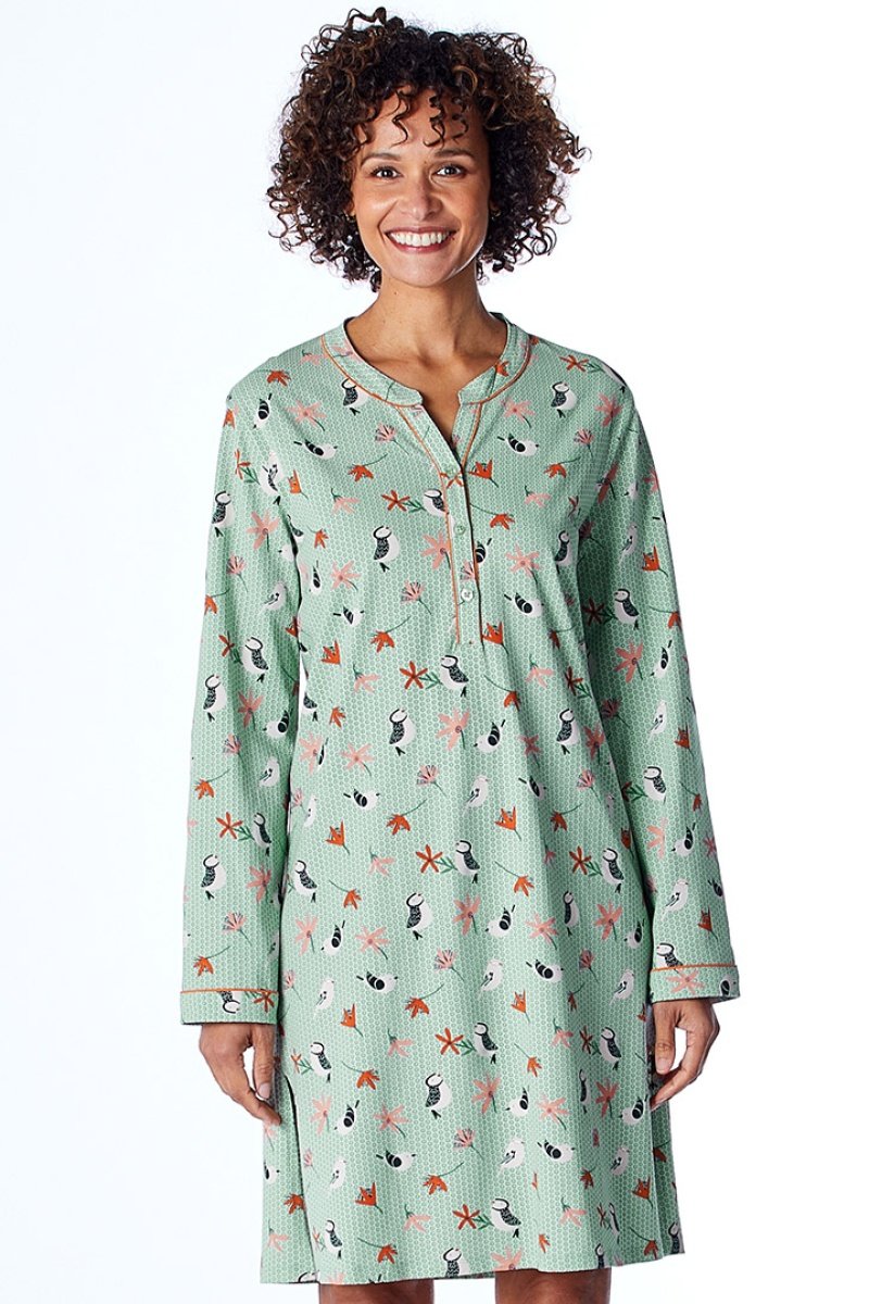 Chemise de nuit Oiseaux graphiques - Vert et blanc