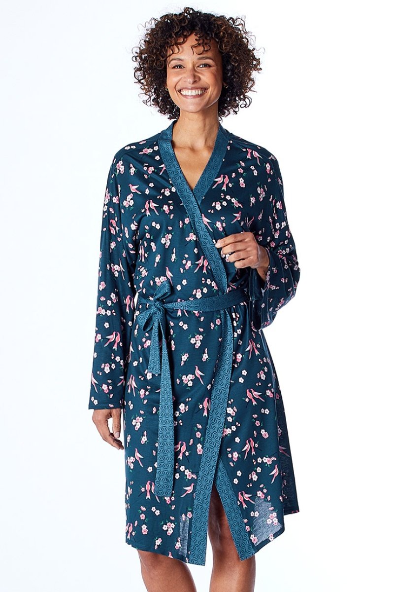 Déshabillé Nuit japonaise - Bleu nuit et rose