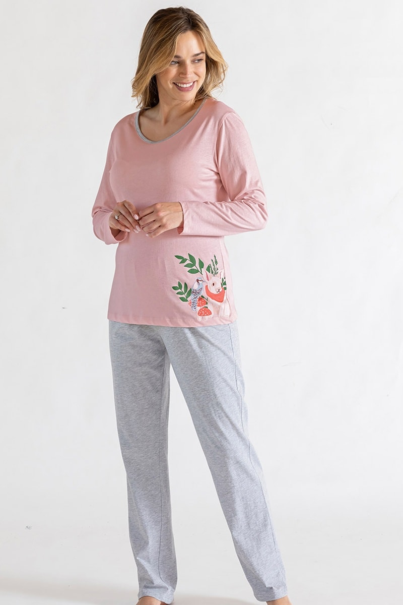 Pyjama Ecureuil & Cie - Rose poudré et gris chiné