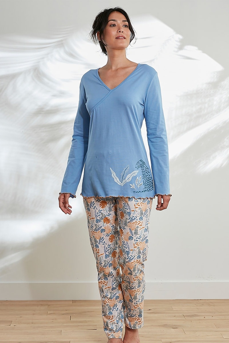 Pyjama Sous la Canopée - Bleu cobalt et blanc