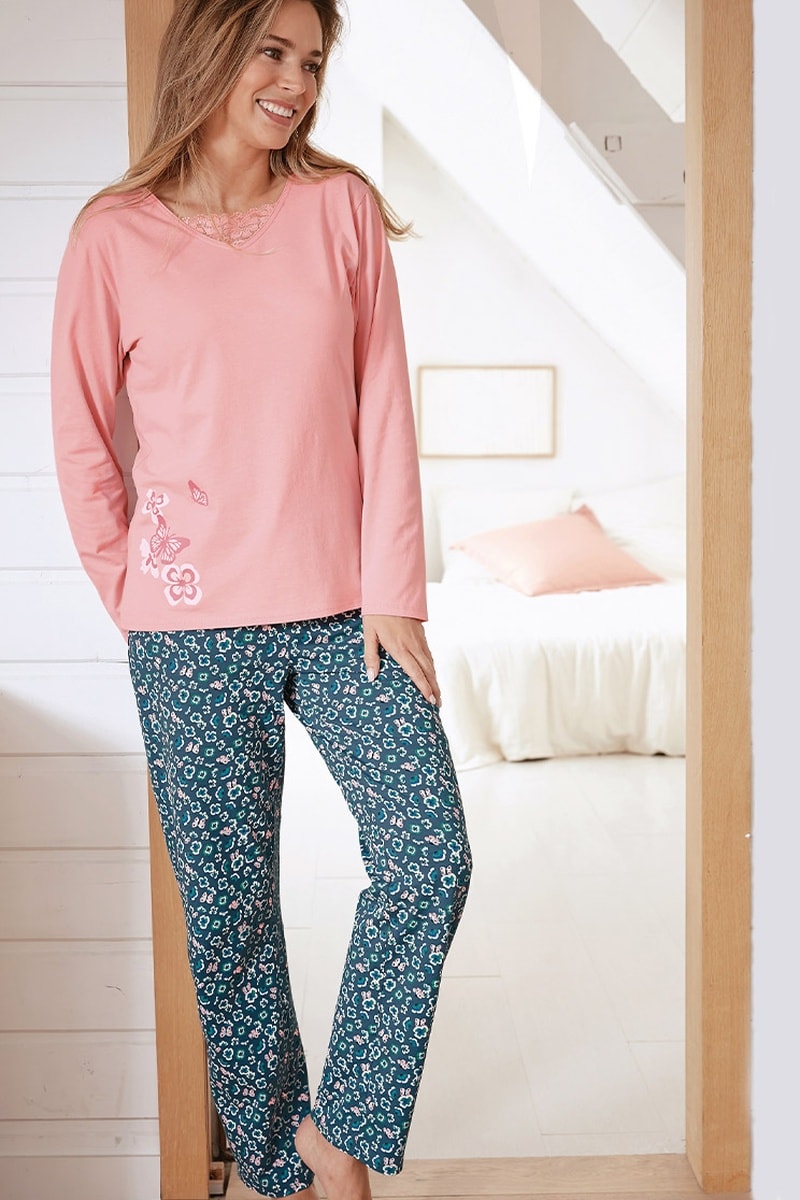 Pyjama Souffle de bonheur - Rose poudré et vert foncé