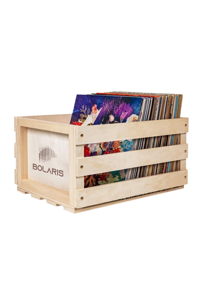 Caisse vinyles Bolaris - 75 albums - Bois naturel