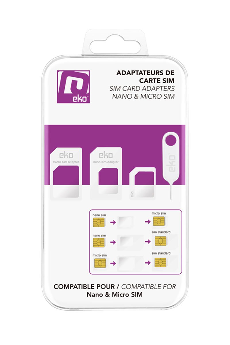 - Adaptateur Nano Sim vers Micro SIM- Adaptateur Nano Sim vers SIM standard- Adaptateur Micro Sim vers SIM standard- Extracteur de SIM