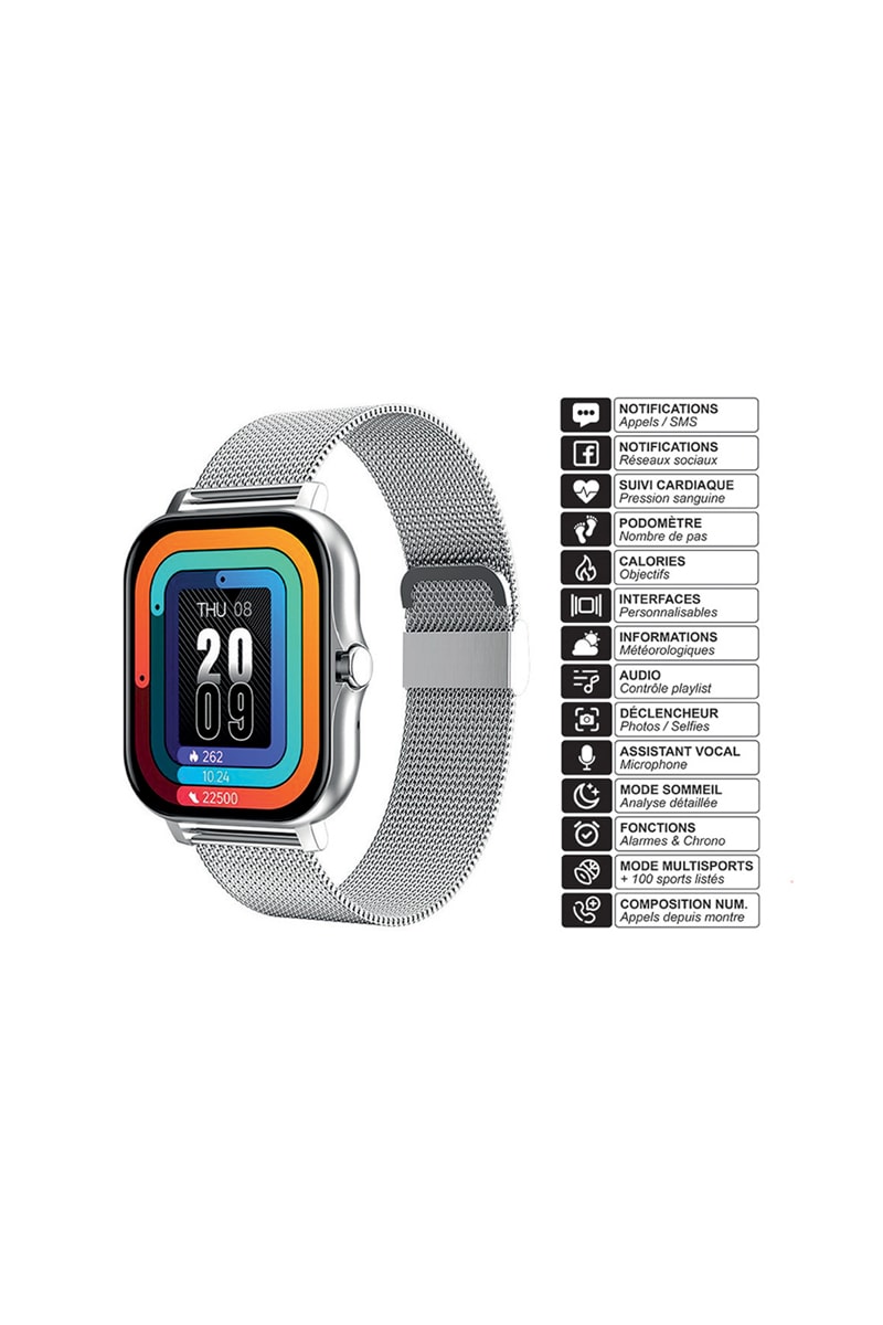 - Montre connectée EKO - Modèle Balnéo - Coloris Argent (bracelet milanais)