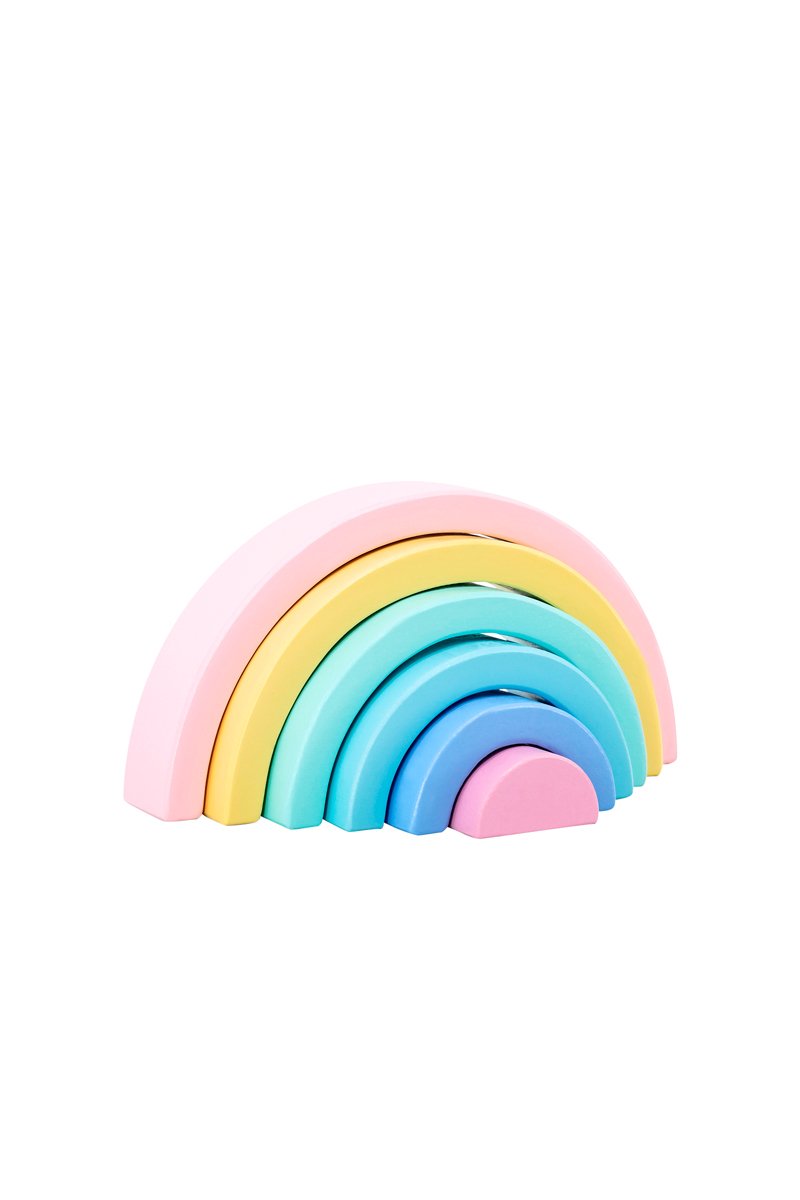 6 pièces en bois de haute qualité, de couleurs et de tailles différentes, qui forment un arc-en-ciel.