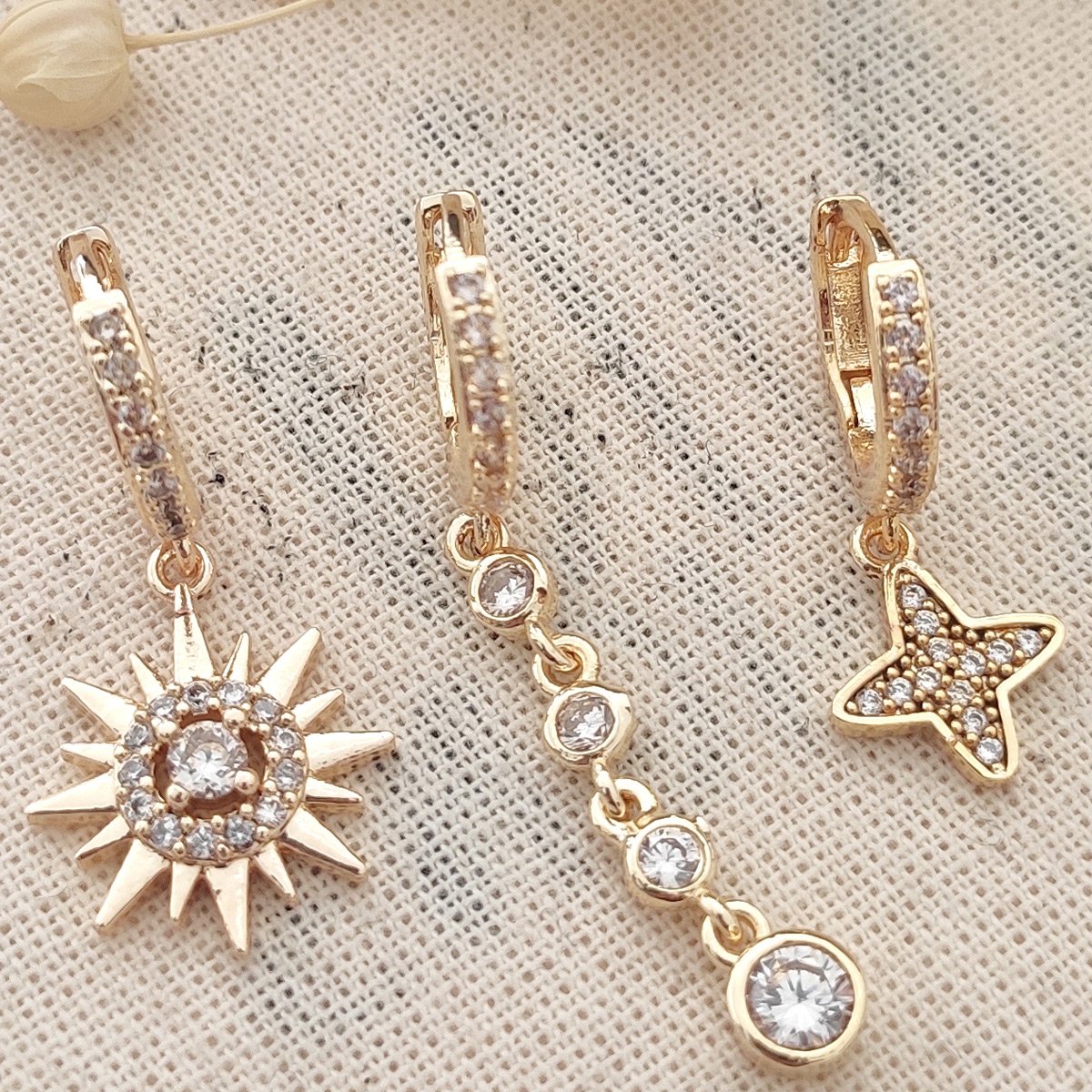 Trio de boucles d'oreilles - Laiton plaqué or & zircons