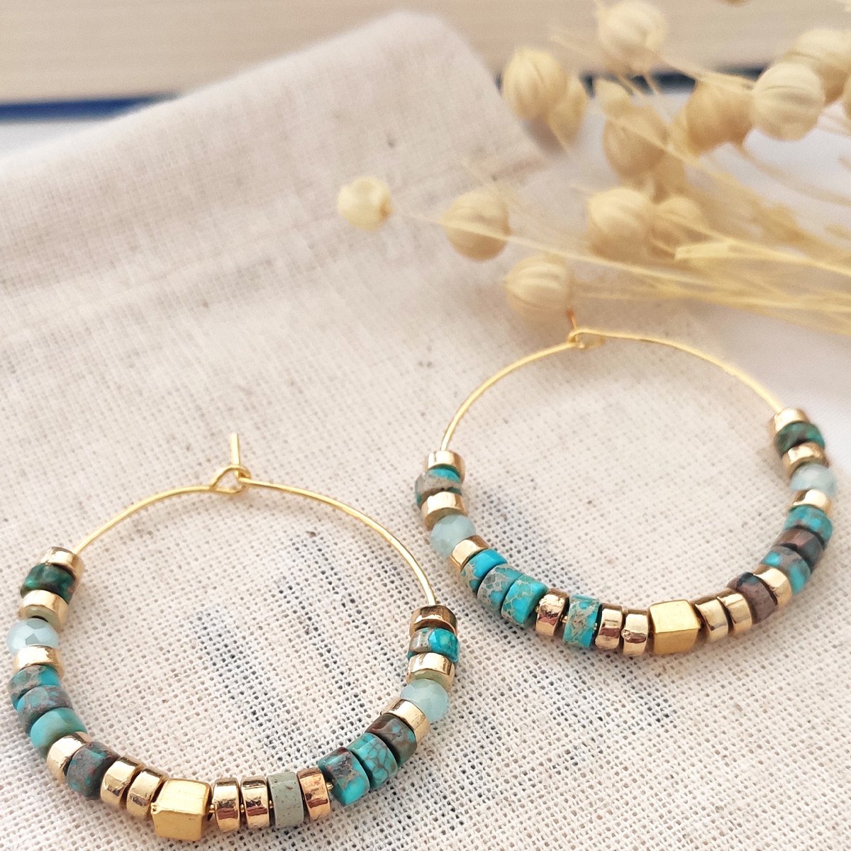 Créoles - Laiton plaqué or & perles