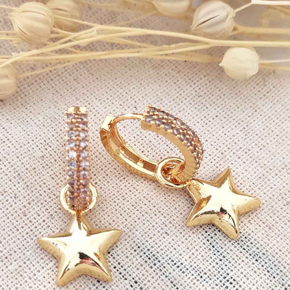 Créoles étoiles - Laiton plaqué or & zircons