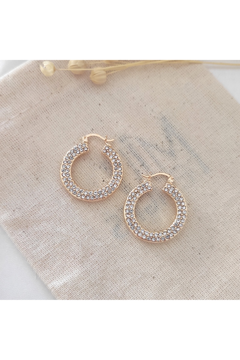 Créoles dorées à l'or jaune serties de zircons.