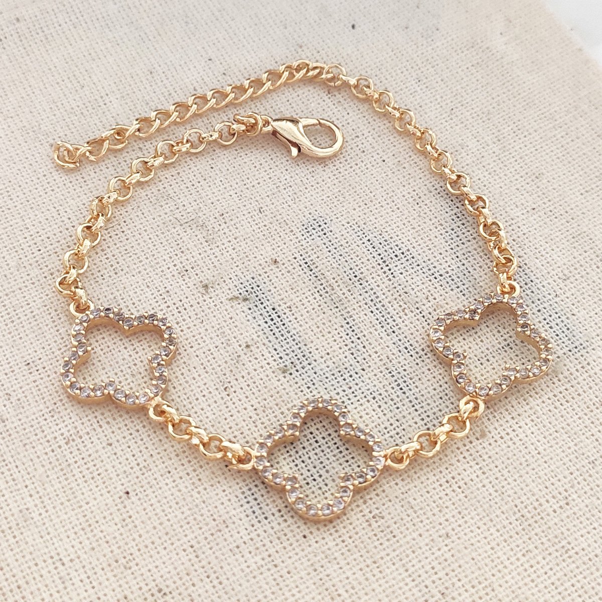 Bracelet trèfle - Laiton plaqué or & zirconium