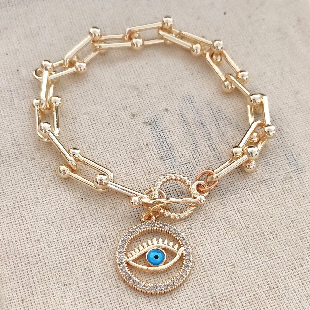 Bracelet Eye - Laiton plaqué or & zircon