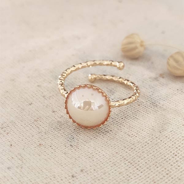 Bague fine ajustable - Laiton plaqué or & pierre synthétique