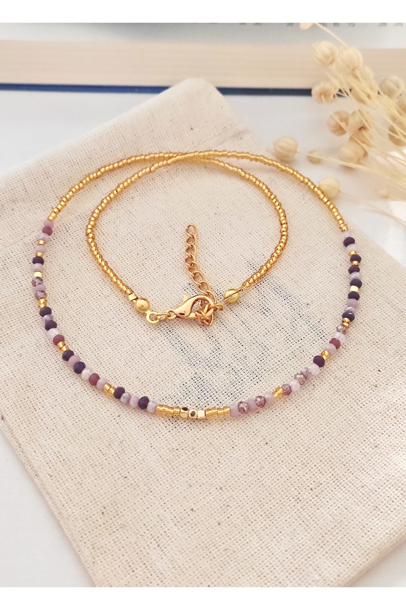 Collier en doré à l'or fin jaune serti de cristaux.